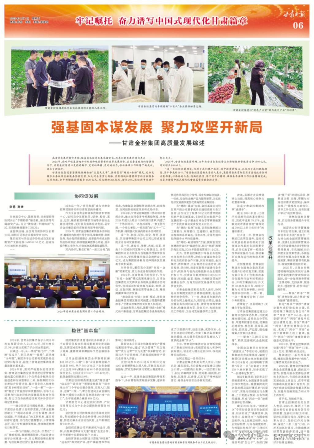 媒體關注 | 強基固本謀發展 聚力攻堅開新局——甘肅金控集團高質量發展綜述