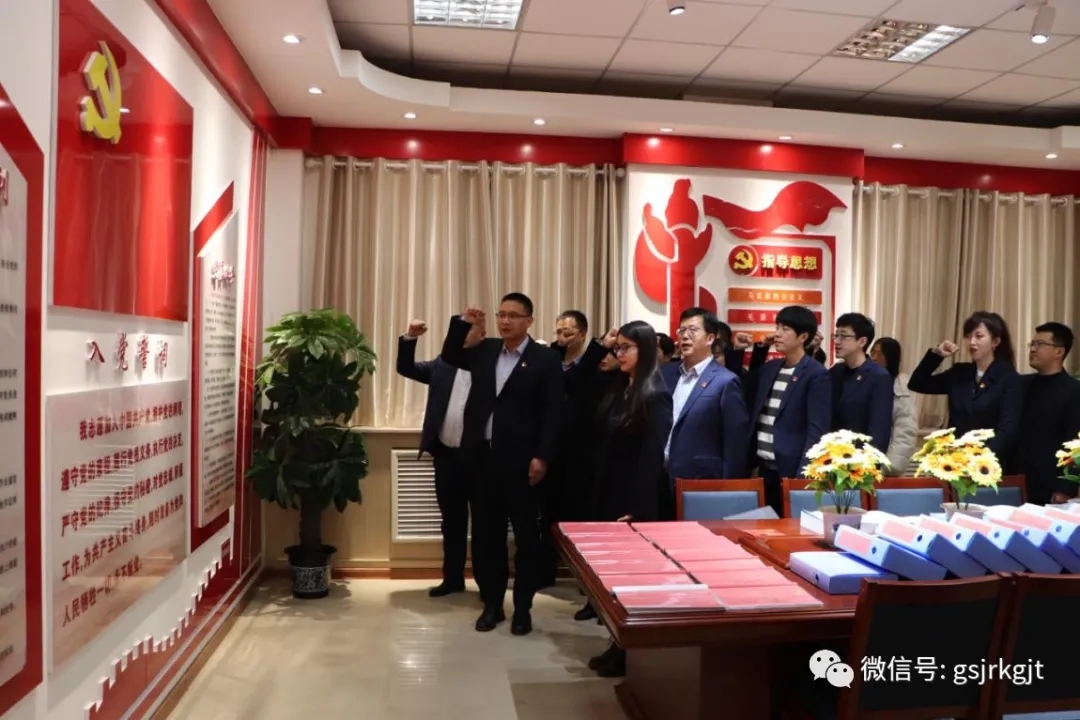 在黨旗前,大家懷著崇敬的心情,握緊右拳,莊嚴宣誓,一句句鏗鏘激昂、莊嚴有力的誓詞,再一次將入黨初心深深烙印在每一名黨員心中,表達了黨員們對黨忠誠、為黨和國家事業(yè)奮斗終身的堅定決心。